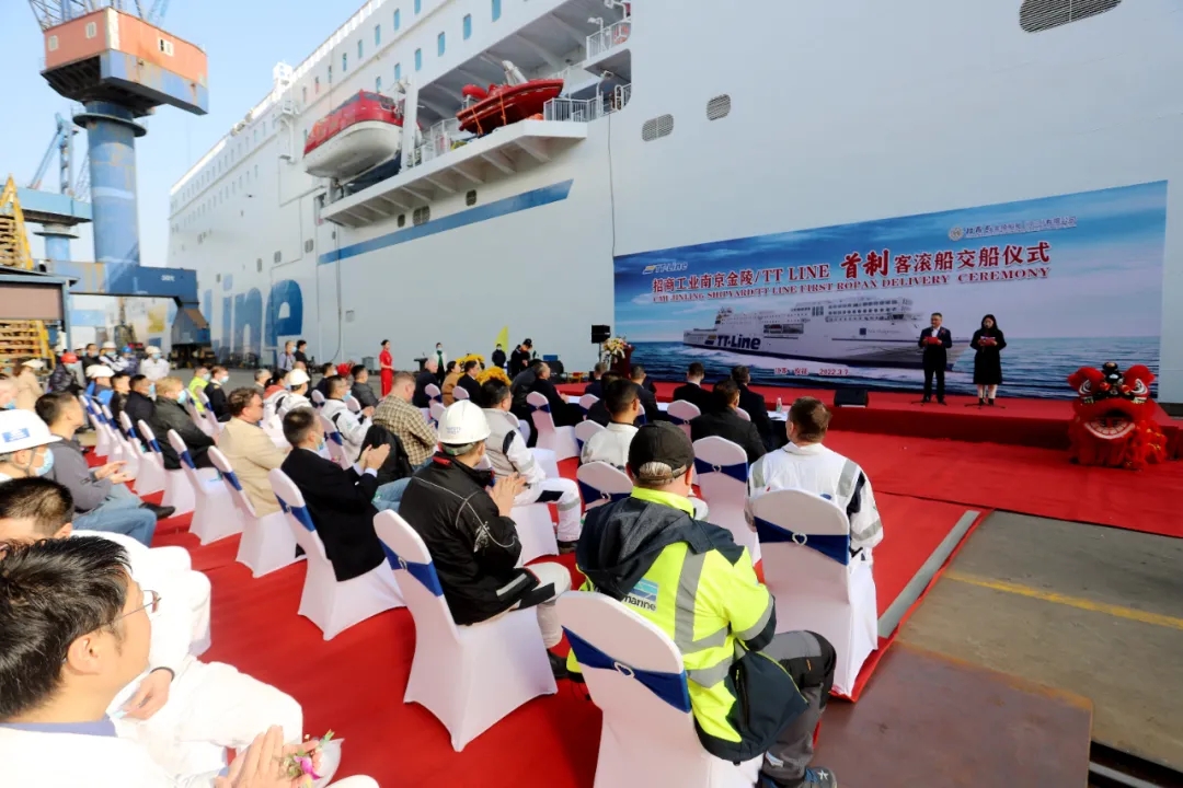 2022年3月7日,Nils Holgersson號最新一代綠色環(huán)保郵輪級客滾船提前順利交付至德國TT-Line船東。該項(xiàng)目由招商工業(yè)南京金陵船廠建造,內(nèi)裝總包工程由德國R&M集團(tuán)瑞瑪公司的中外員工共同完成。